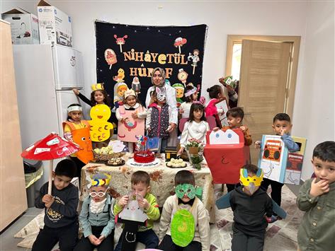 İlçe Müftülüğümüze bağlı 4-6 yaş kuran kursumuzda "Harf Bitirme Etkinliği" yapıldı. Etkinlikte öğrenciler Kur'an harflerini çeşitli görseller kullanarak temsil ettikleri bir gösteri düzenlediler.