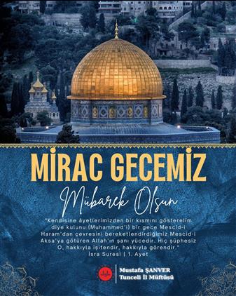 "Âlemlere rahmet olarak gönderilen Peygamberimiz Hz. Muhammed Mustafa’nın (s.a.v) Yüce Allah’ın ilahî davetine mazhar olduğu Miraç gecesini idrak etmenin huzur ve manevî coşkusunu hep birlikte yaşıyoruz.